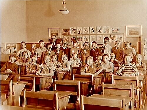 Vasaskolan, klassrumsinteriör, 23 pojkar med lärare David Wählby, klass 6C, sal 4.