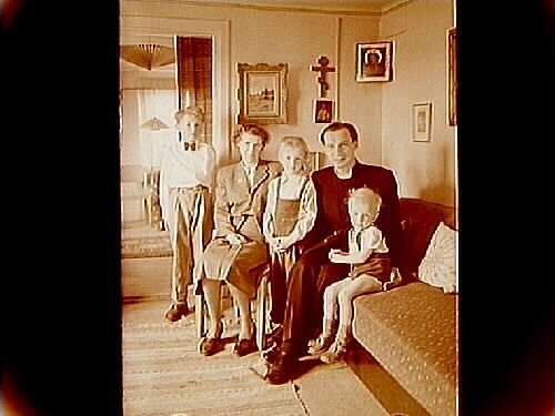 Familjegrupp, 5 personer, rumsinteriör.