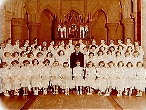 Konfirmander, 57 flickor och kyrkoadjunkt Inge Lagerstedt.