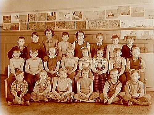 Almby Södra skola, klassrumsinteriör, 21 skolbarn med lärarinna fröken Karin Ohlson, klass 2ao, sal 3.