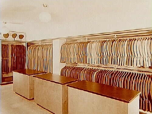 Affärsinteriör, kostymer och rockar.