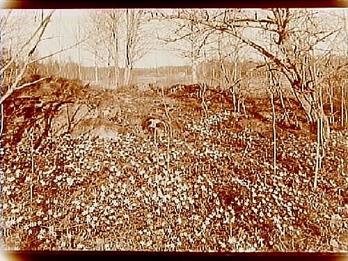 Vitsippor i backen.