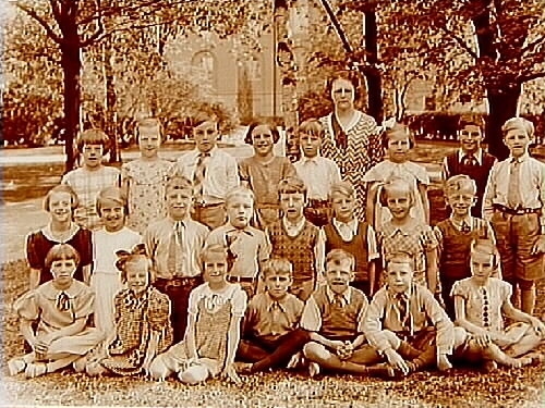 Engelbrektsskolan, 23 skolbarn med lärarinna fröken Elsa Lindh, sal 15.