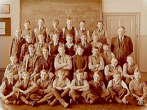 Vasaskolan, klassrumsinteriör, 30 pojkar med lärare Liedner, klass 6D, sal 9.