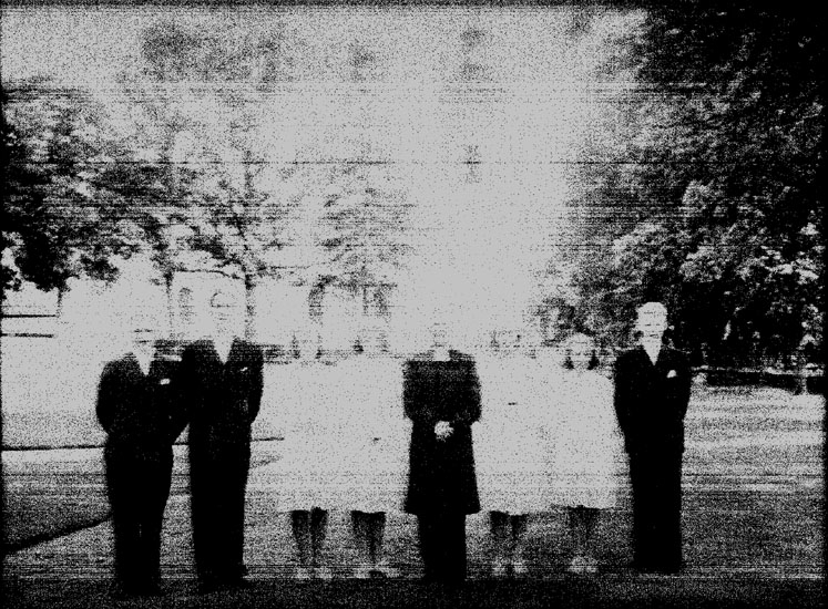 7 konfirmander, 4 flickor, 3 pojkar och kyrkoherde Areborg.