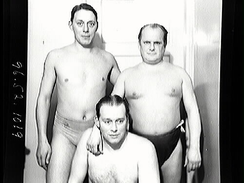 "Koksarn" Widén, "Knubben" Ahlberg och Sune Lindberg. Plats:Simhallen, Fabriksgatan.