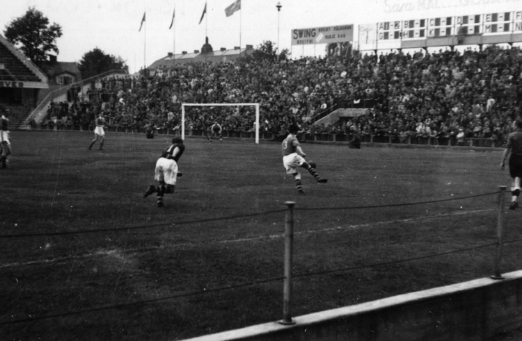 Fotboll, Danmark-Sverige vid Råsunda, Stockholm.