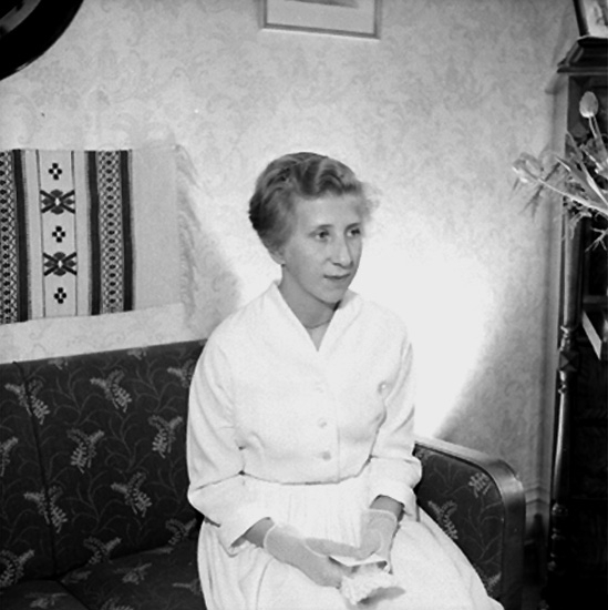 Rumsinteriör, en flicka, konfirmand.