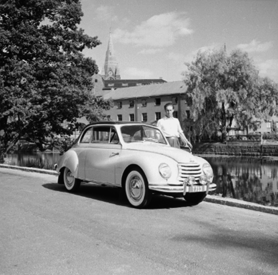 En man vid bilen.