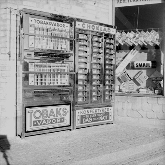 Tobaksaffären Stjärnan, exteriör, tobaks- och chokladautomat.