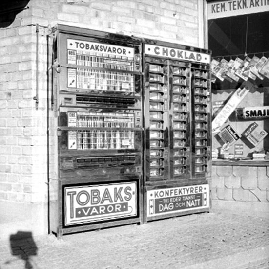 Tobaksaffären Stjärnan, exteriör, tobaks- och chokladautomat.