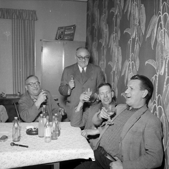 Titel: Rumsinteriör, grupp fyra män vid bordet. Sjömark & Co, Ring-Centralen.