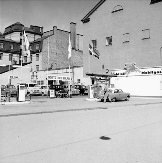 Bensinstation och byggnader.