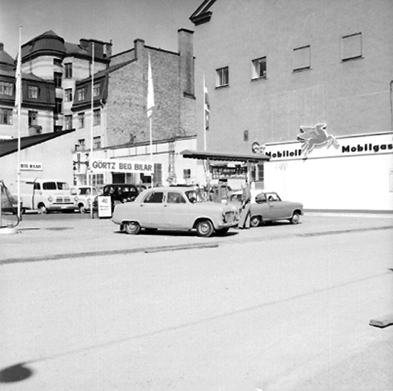 Bensinstation och byggnader.