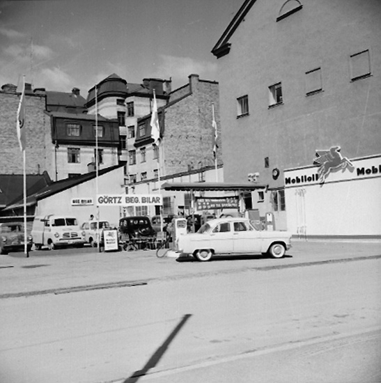 Bensinstation och byggnader.