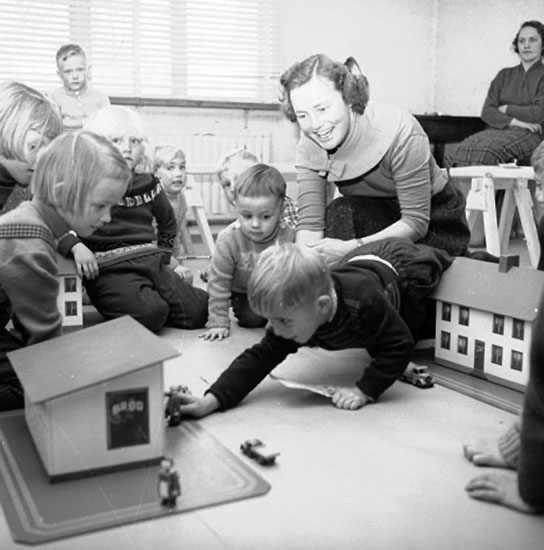 Trafiklekskolan i Ställdalen, interiör, barn och lärare.