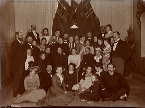 Denna gruppbild från sekelskriftet (märk unionsflaggorna) innehåller 11 identifierade personer. De finns angivna på fotots baksida. Den som tror sig kunna bidraga med ytterligare uppgifter är välkomna med dessa.