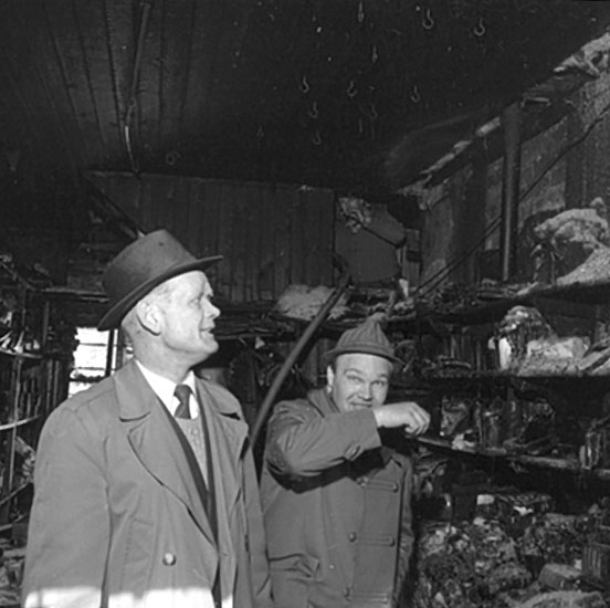 Branden på We-Ges affär i Ställdalen, affärsinteriör, brandkår, brandsläckning.