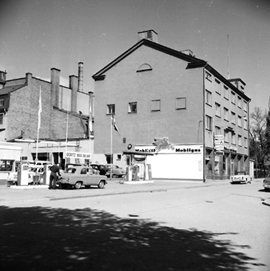 Bensinstation och byggnader.