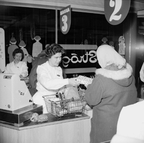Konsum Ströget, affärsinteriör, kunder och personal.