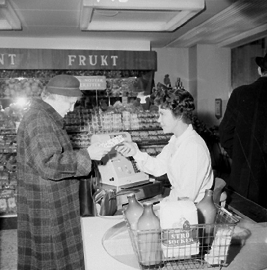 Konsum Ströget, affärsinteriör, kunder och personal.