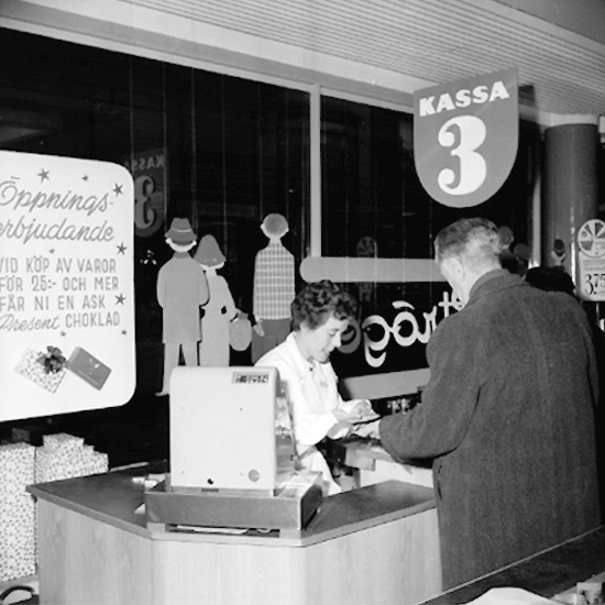 Titel: Konsum Ströget, affärsinteriör, kunder och personal.