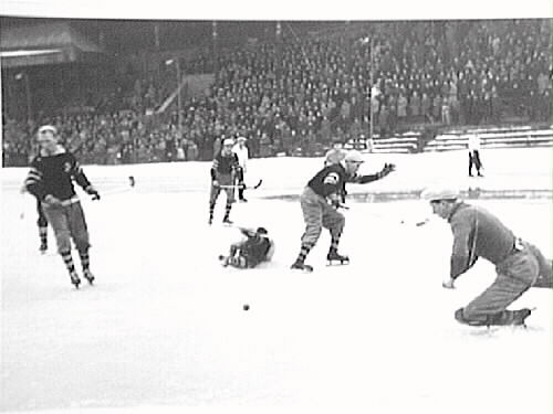 Bandy vid Stockholms stadion. ÖSK-AIK. Situationsbild mot AIK.
