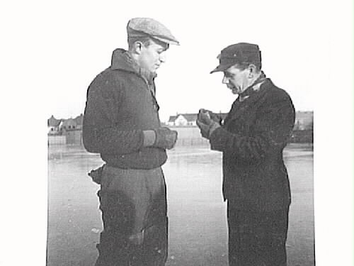 Gösta Klingberg (målvakt) kollar bollen med lagledare H.Jensen.