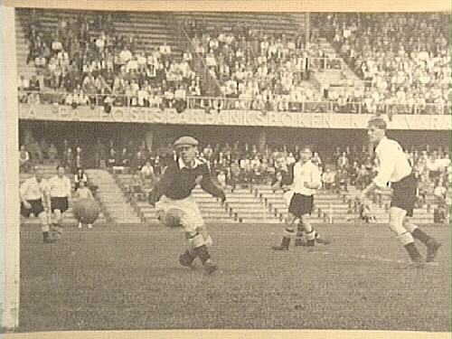AIK mål. ÖSK:s O.Sääv och Ellert Blomqvist ser på.