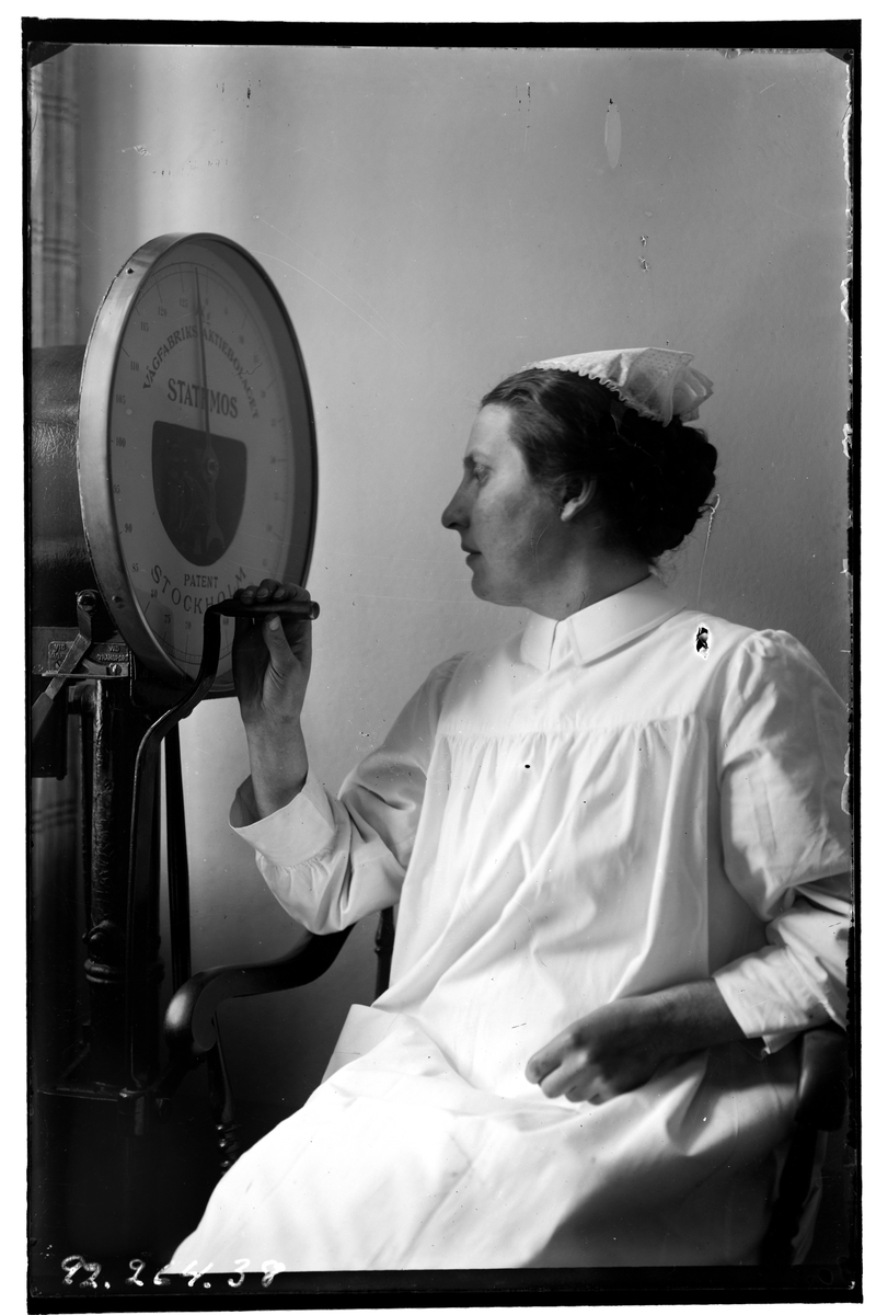 Hålhults sanatorium, interiör, diakonissa, sitter på våg