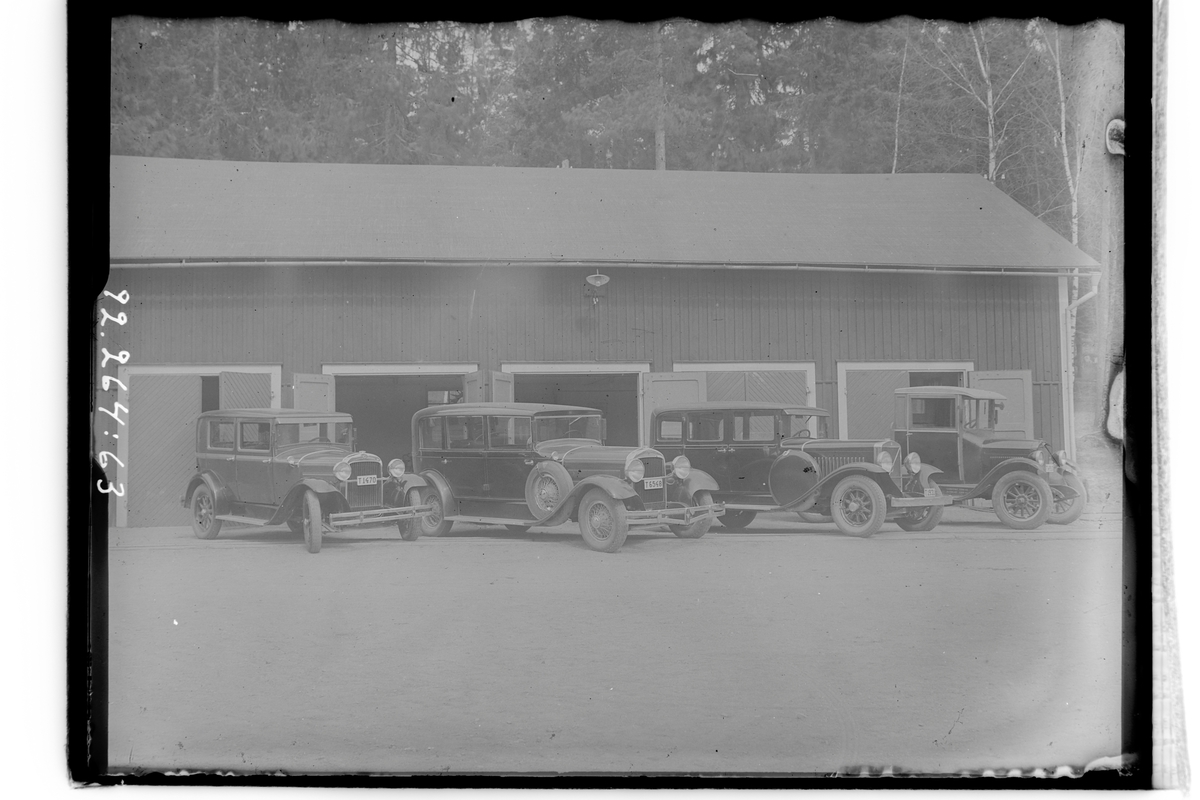 Hållahults sanatorium, exteriör, garaget och bilarna.