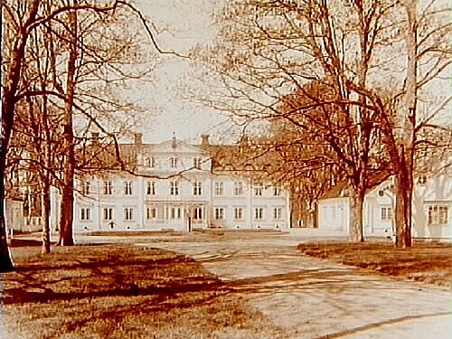 Skyllbergs Herrgård, tvåvånings herrgårdsbyggnad med frontespis och fyra flygelbyggnader.