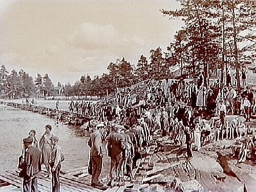 Hargebaden, badgäster vid ångbåtsbryggan.