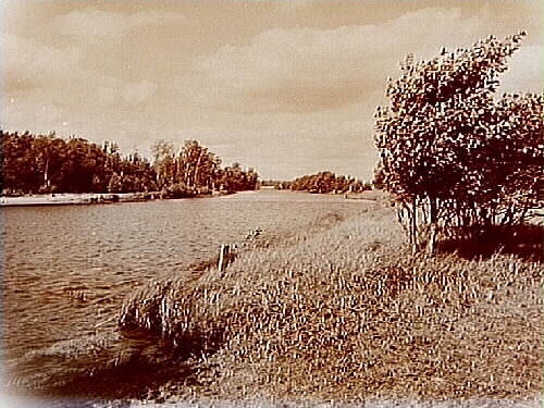 Lagans utlopp i sjön Vidöstern som ligger på gränsen mellan Kronobergs och Jönköpings län.