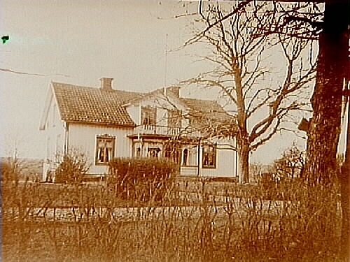 Frölunda gård, en och en halvvånings bostadshus med frontespis, balkong och veranda.