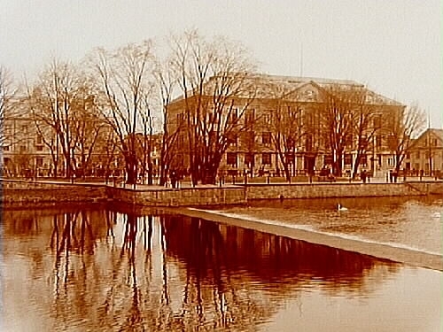 Karolinska Läroverket, läroverksbyggnad i tre våningar med barockpräglad fasad.