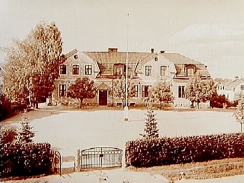 Rynninge Folkskola, envånings skolbyggnad med inredd vind, två frontespisar och takhuvar.