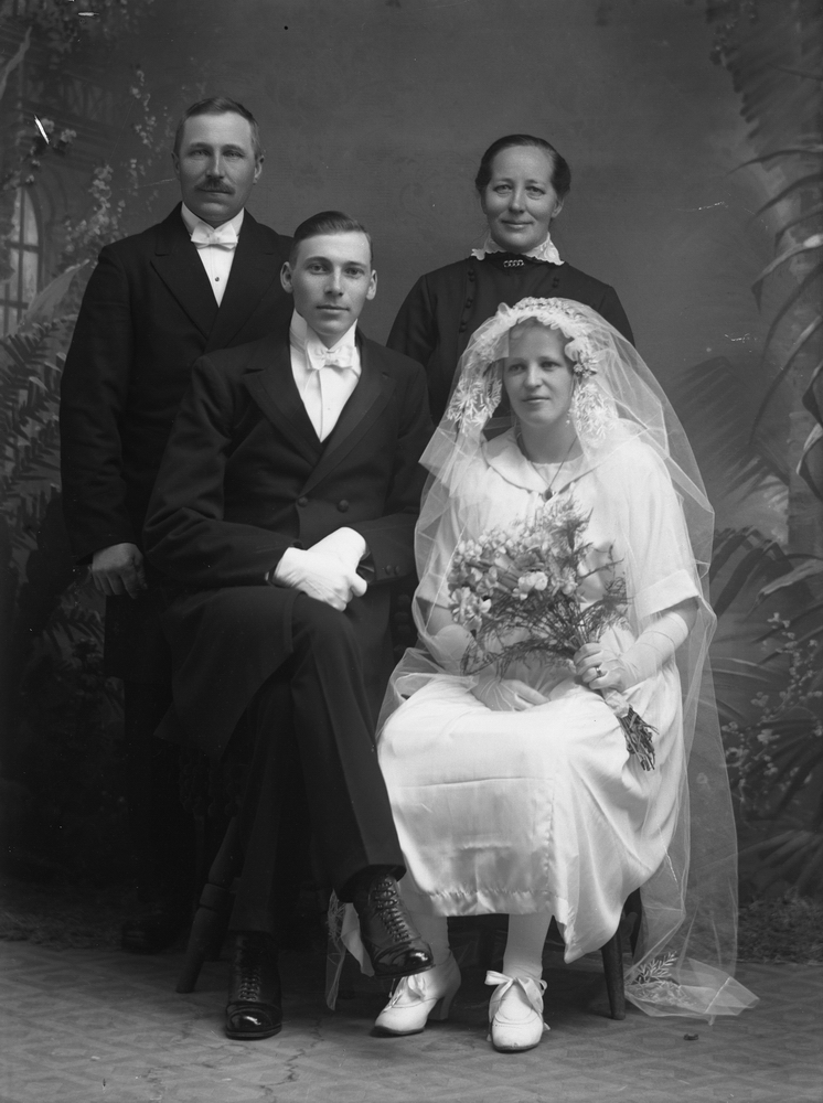 Brudens föräldrar: Karl Johansson, född 1879-08-31 vid Tarsta i Sköllersta och Amanda Karlsdotter, född 1880-02-10 vid Svalbygget i Svennevad.