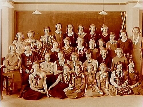 Engelbrektsskolan, klassrumsinteriör, 31 flickor med lärarinna fru Greta Zommarin, sal 22.