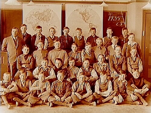 Engelbrektsskolan, klassrumsinteriör, 31 pojkar med lärare N. Bäck, klass 6F, sal 17.