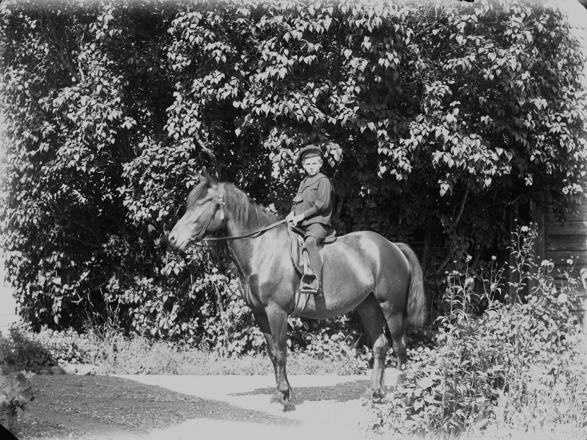 En pojke på en häst.