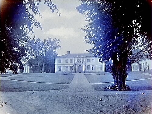 Stora Väsby Herrgård, tvåvånings herrgårdsbyggnad med frontespis, två envånings flygelbyggnader.