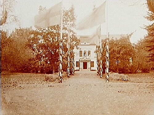 Nynäs säteri, tvåvånings herrgårdsbyggnad med frontespis. Bröllopsdekorationer.