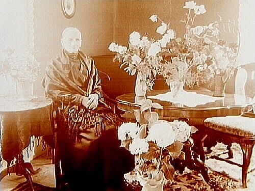 Rumsinteriör, en kvinna (gamla mangårdsbyggnaden, Eriksberg).