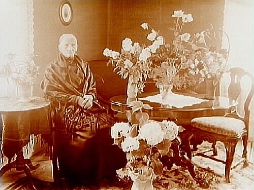 Rumsinteriör, en kvinna (gamla mangårdsbyggnaden, Eriksberg).