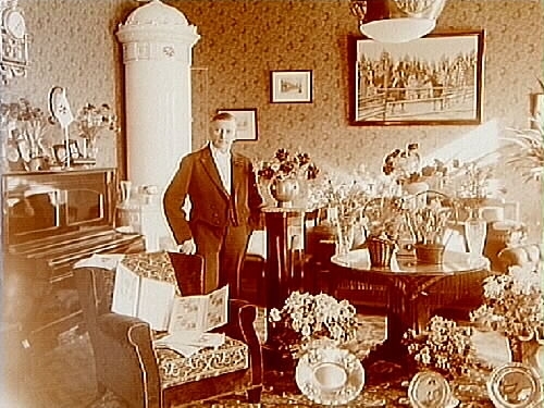 Titel: Rumsinteriör, en man. Grosshandlare Ernst Hedéns 50 årsdag