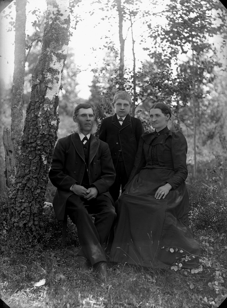 Familjegrupp tre personer.