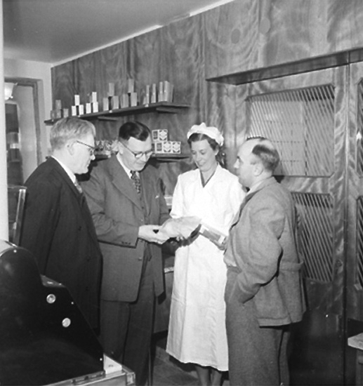 Konsum Bageriet, interiör, fyra personer.
