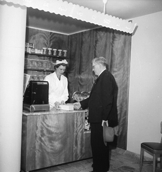Konsum Bageriet, interiör, en man och en kvinna.