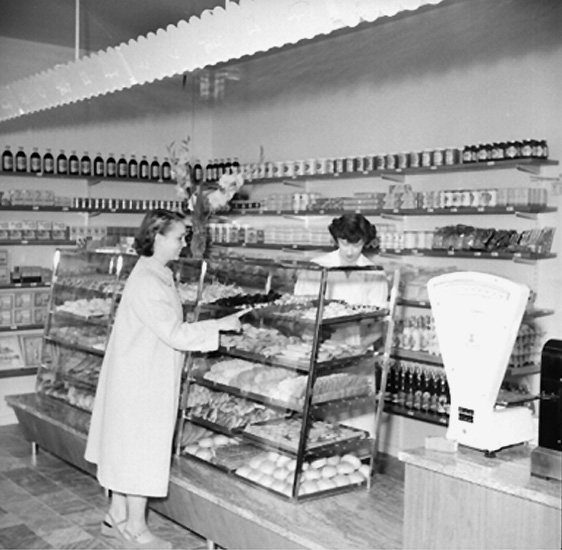 Titel: Konsum, affärsinteriör, kunder och personal.